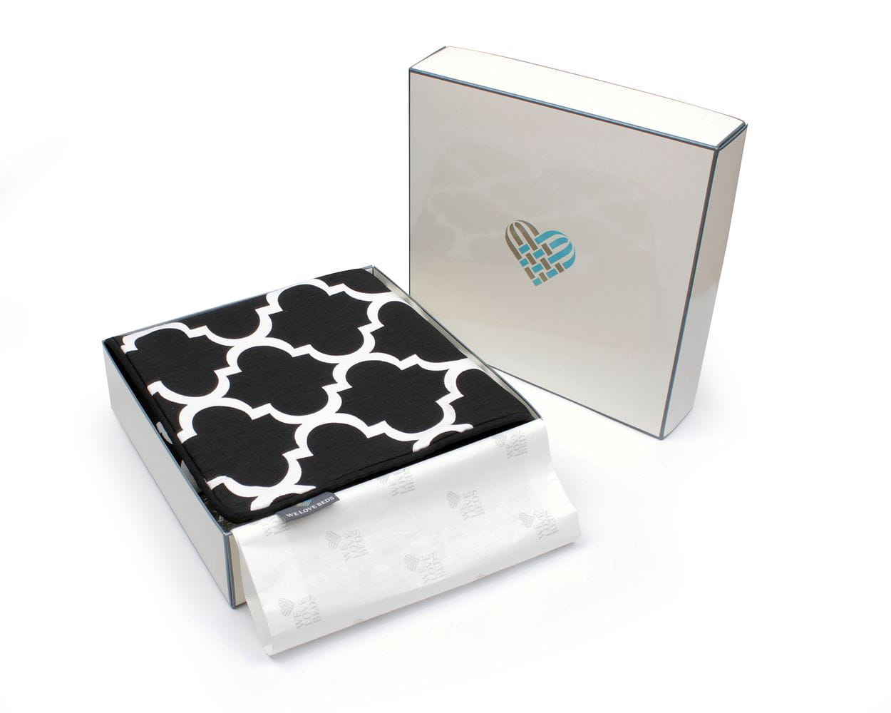 Ein dekoratives Kissen in einem marokkanischen Schwarz-Weiß-Klee in einer luxuriösen Version.