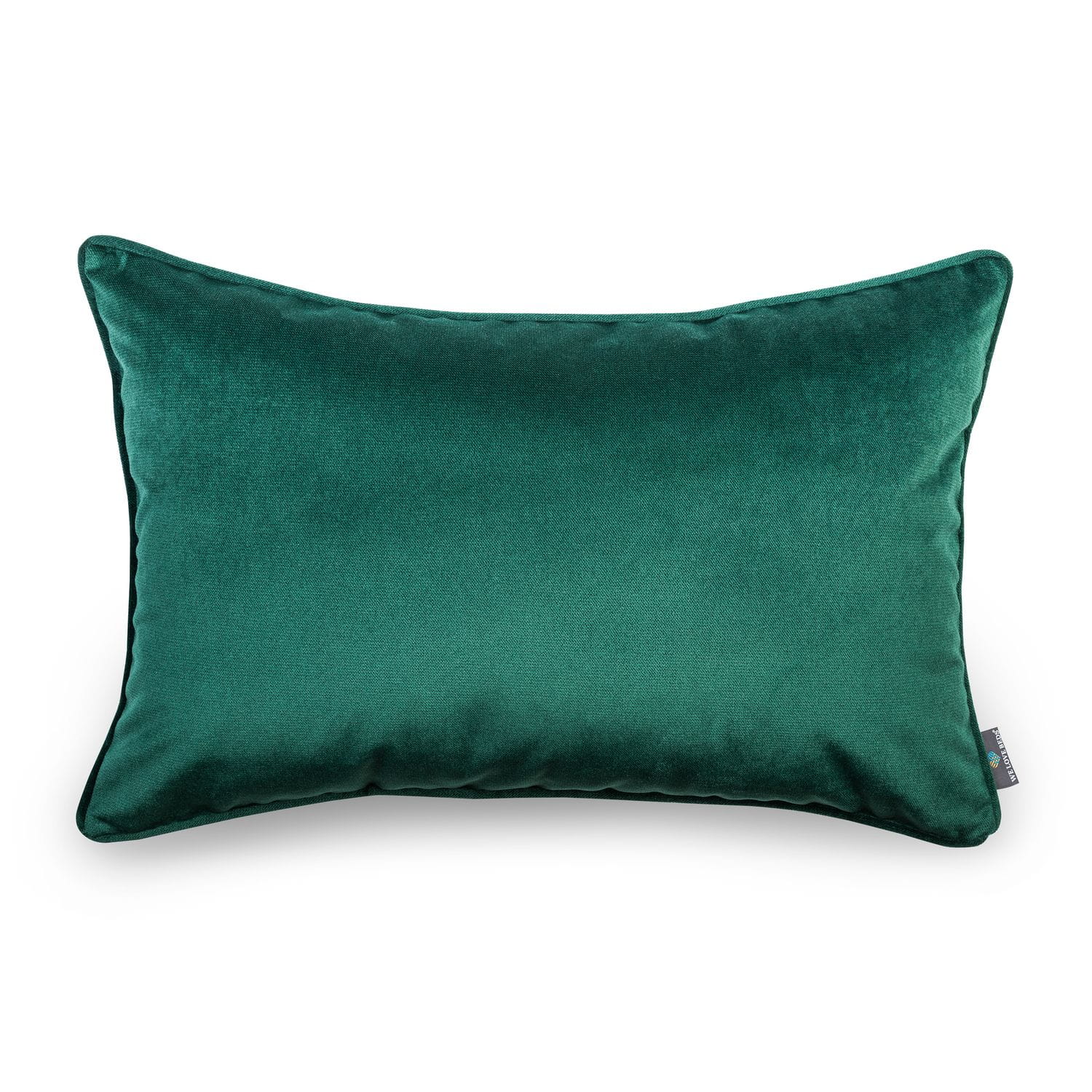 Der dekorative Kissenbezug Deep Forest besteht aus Veloursstoff, der in seiner Farbe einem Wald an einem Herbstabend ähnelt.