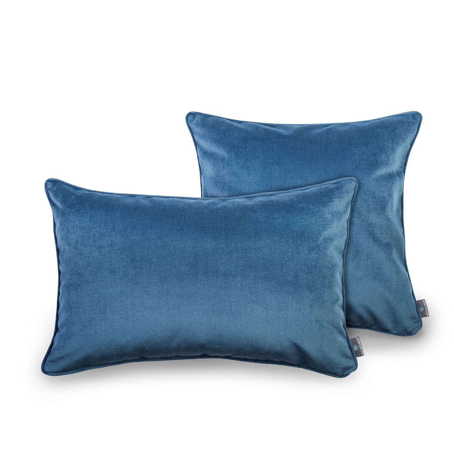 Das dekorative Kissen Jeans Blue besteht aus Veloursstoff mit einer Farbe, die dunkelblauen Jeans ähnelt.