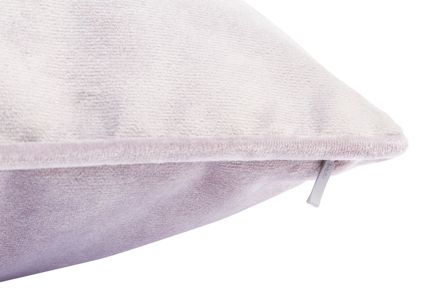 Der Kissenbezug Shark Skin besteht aus Veloursstoff, der in seiner Farbe der Haifischhaut ähnelt und grau-lila schimmert.