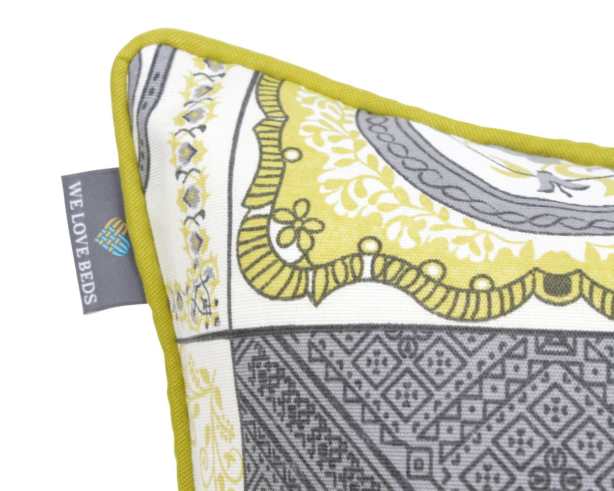 Ein dekoratives Kissen mit einem Motiv spanischer Dekoration ist eine perfekte Dekoration für jedes Interieur. Die Kombination von geometrischen Mustern mit verschiedenen Grüntönen ergibt einen erstaunlichen Effekt. Der Kissenbezug eignet sich für Innenräume in hellen Pastellfarben, in denen das Lichtspiel von großer Bedeutung ist. Es kann auch eine Dekoration für Zimmer im klassischen Stil sein, da sein Design wirklich zeitlos ist.