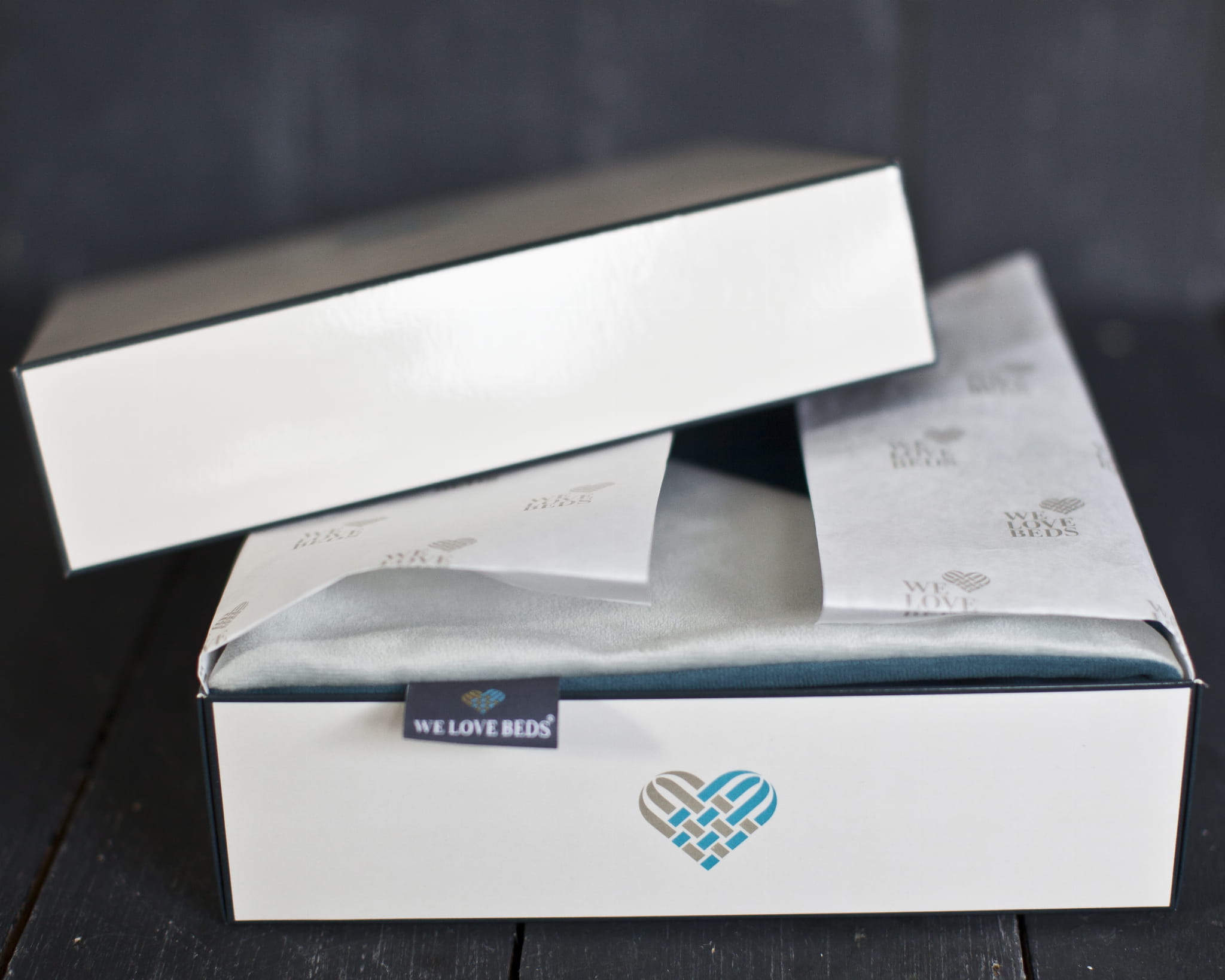 Jedes Produkt ist in einem Kreidekarton verpackt, der mit Musselinpapier gepolstert ist. Das Kissen ist daher perfekt als ein einzigartiges Geschenk.