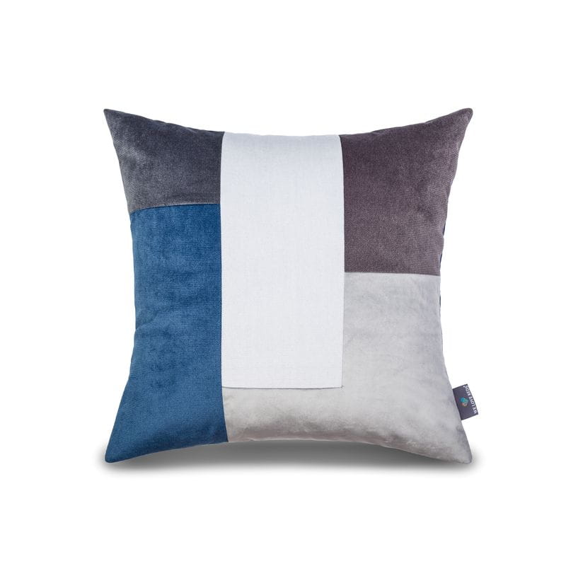 Das Design von asymmetrischen Formen und bunten Stoffen verleiht dem Interieur einen außergewöhnlichen Stil. Der Kissenbezug ist aus Velours, zart, weich und pflegeleicht. Perfekt geeignet für einen minimalistischen und geschmackvollen Raum.