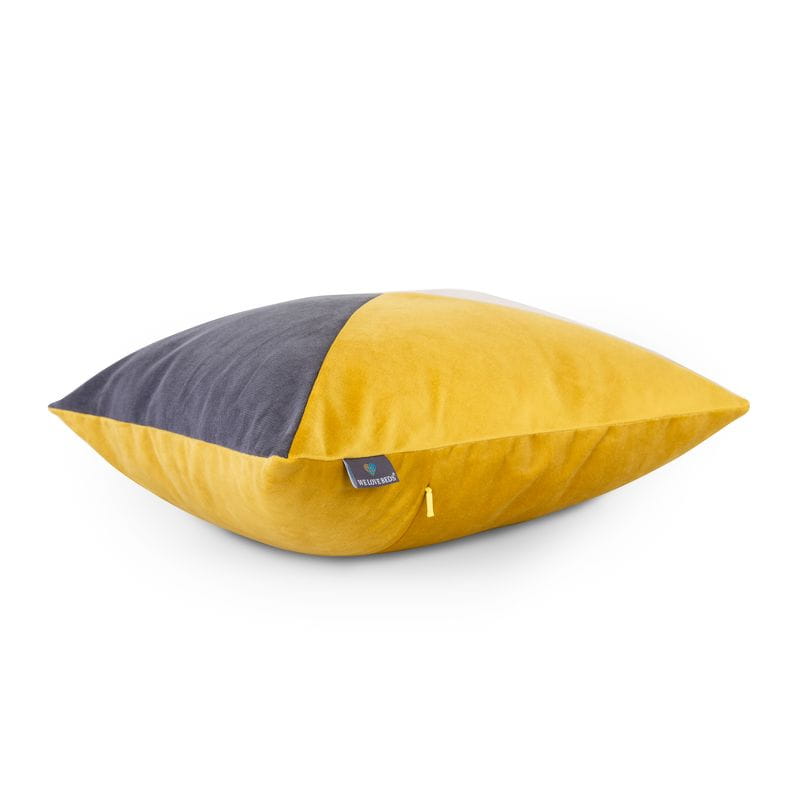 Das Design von asymmetrischen Formen und bunten Stoffen verleiht dem Interieur einen außergewöhnlichen Stil. Der Kissenbezug ist aus Velours, zart, weich und pflegeleicht. Perfekt geeignet für einen minimalistischen und geschmackvollen Raum.