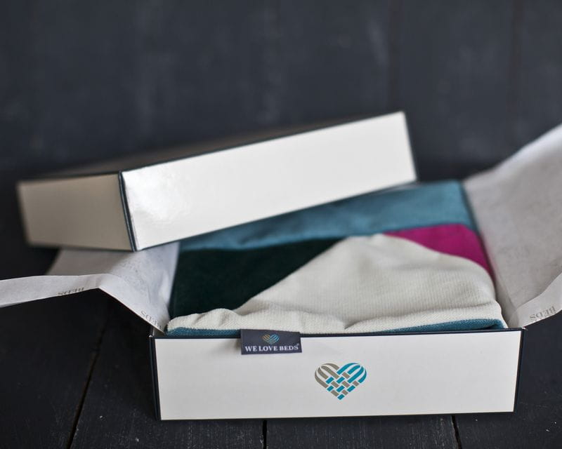 Jedes Produkt ist in einem Kreidekarton verpackt, der mit Musselinpapier gepolstert ist. Das Kissen ist daher perfekt als ein einzigartiges Geschenk.