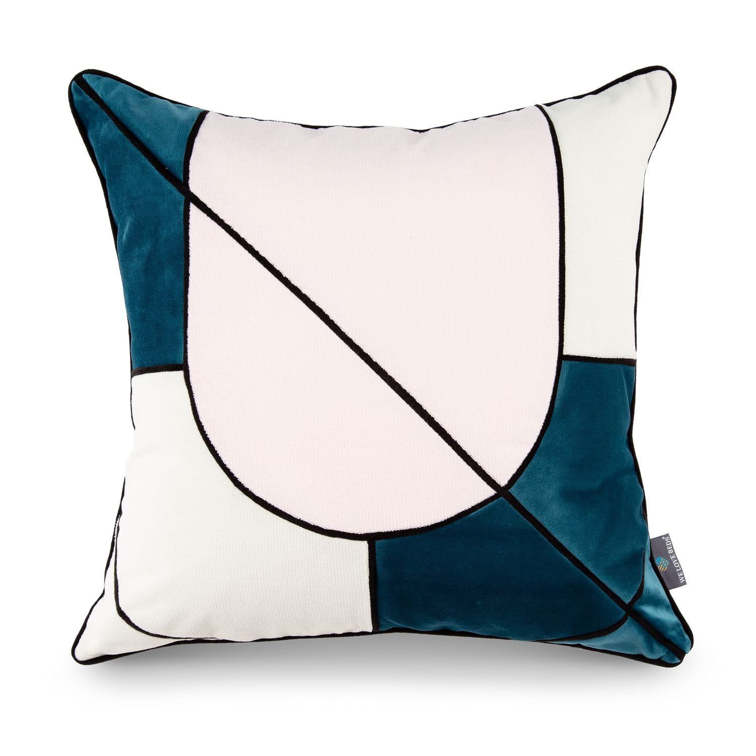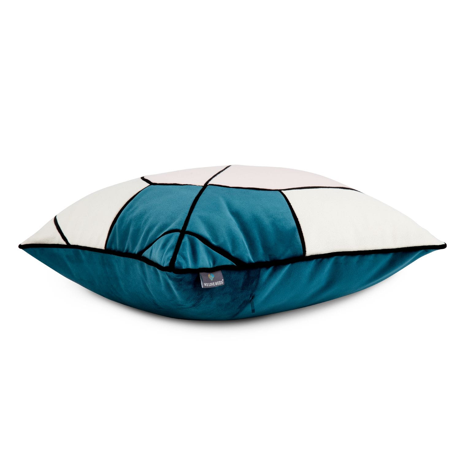 Das Design von asymmetrischen Formen und bunten Stoffen verleiht dem Interieur einen außergewöhnlichen Stil. Der Kissenbezug ist aus Velours, zart, weich und pflegeleicht. Perfekt geeignet für einen minimalistischen und geschmackvollen Raum.