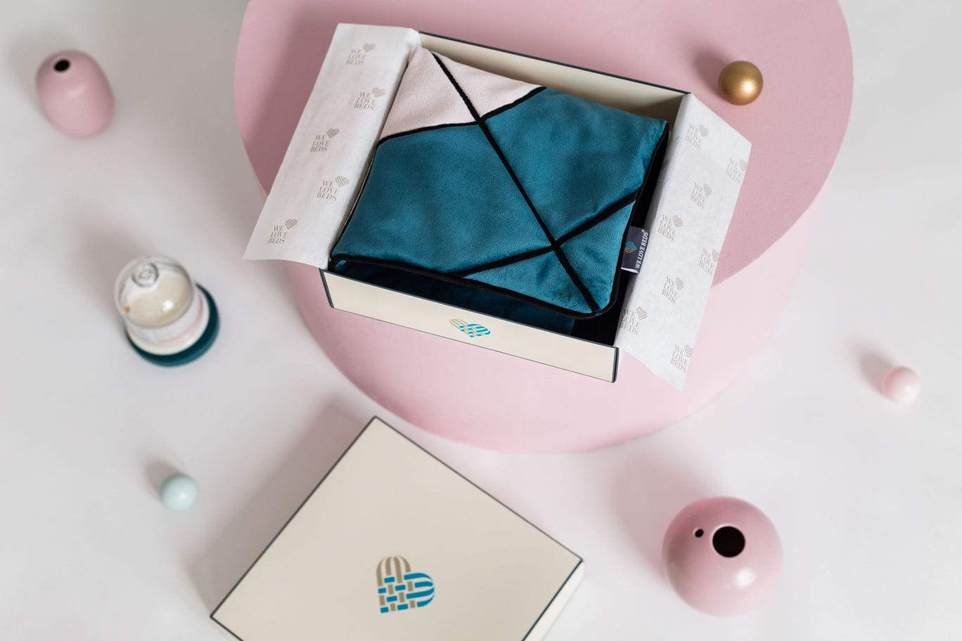 Jedes Produkt ist in einem Kreidekarton verpackt, der mit Musselinpapier gepolstert ist. Das Kissen ist daher perfekt als ein einzigartiges Geschenk.